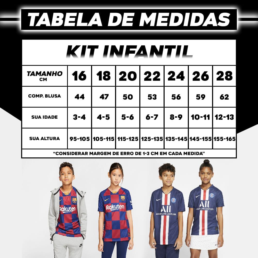 Não esqueça de verificar a tabela de medidas para garantir que o tamanho escolhido seja o ideal para a criança.